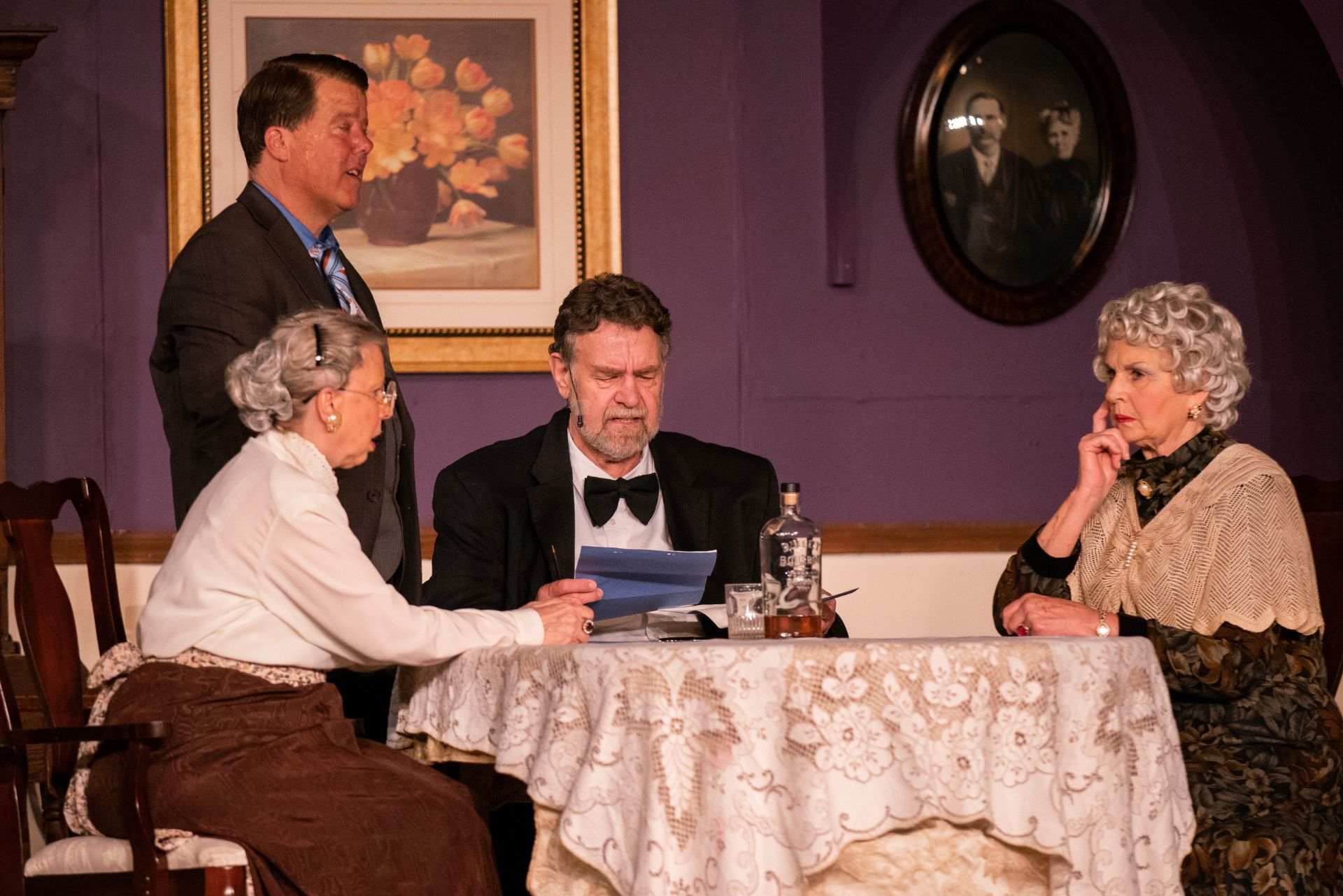 MEAL SERVICE: As a dinner theatre, we serve the same meal for every performance of each show. The only food options are the listed menu available on the website, with an option to upgrade the entrée to a salmon filet for an additional cost. We are unable to accept any special food requests. Guests with special dietary needs may want to consider our Show Only performances on Thursday nights. We apologize for any inconvenience. No outside food is allowed in the theatre.